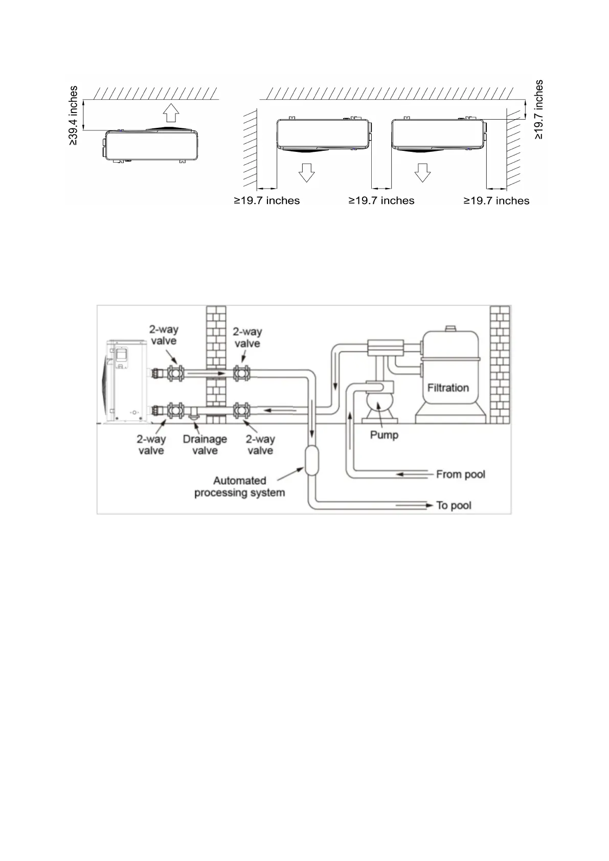 Leave at least 19.7 inches of empty space around the sides and rear of heat pump.