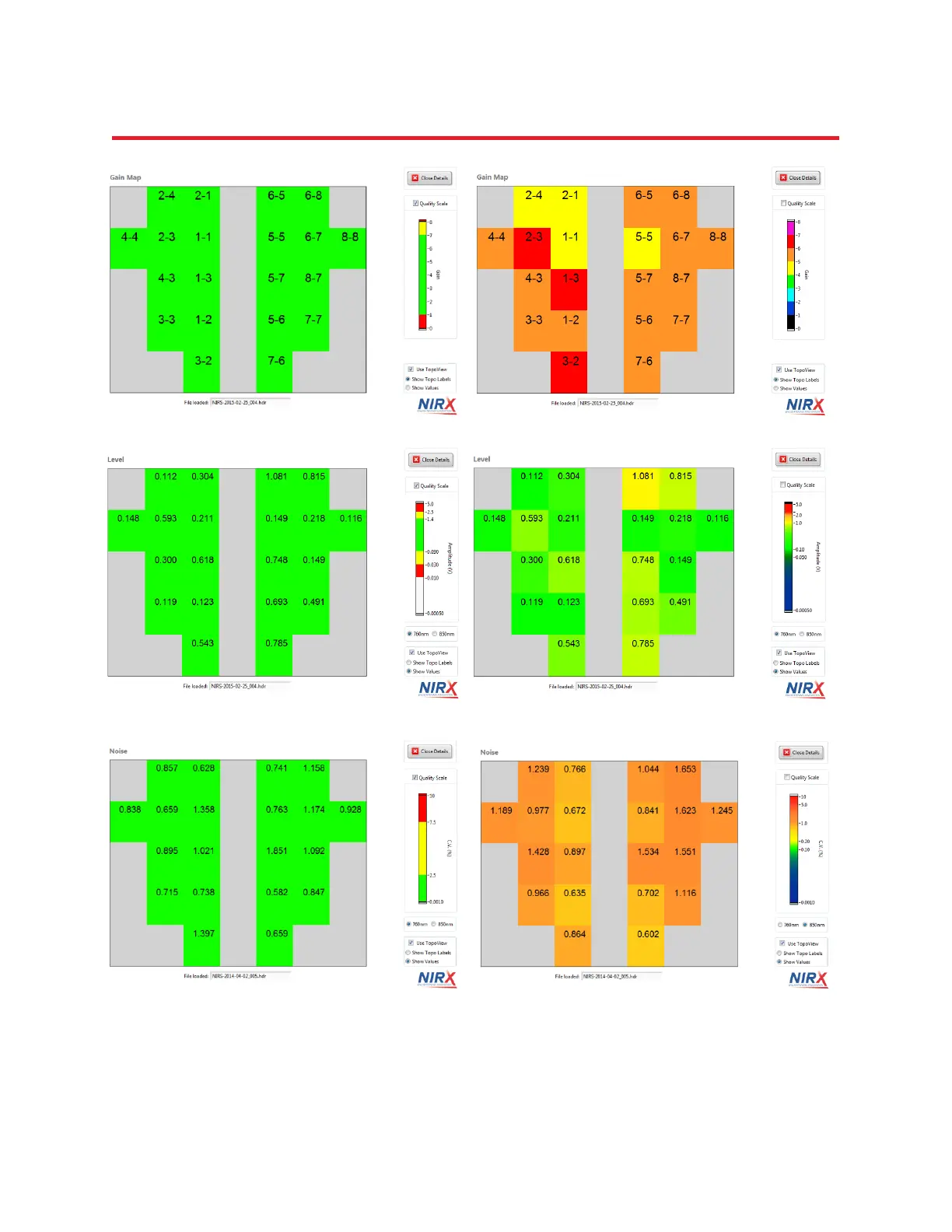 Figure 36. Gain (top), Level (mid) and Noise (bottom) maps are displayed on new (left) and old (right) style