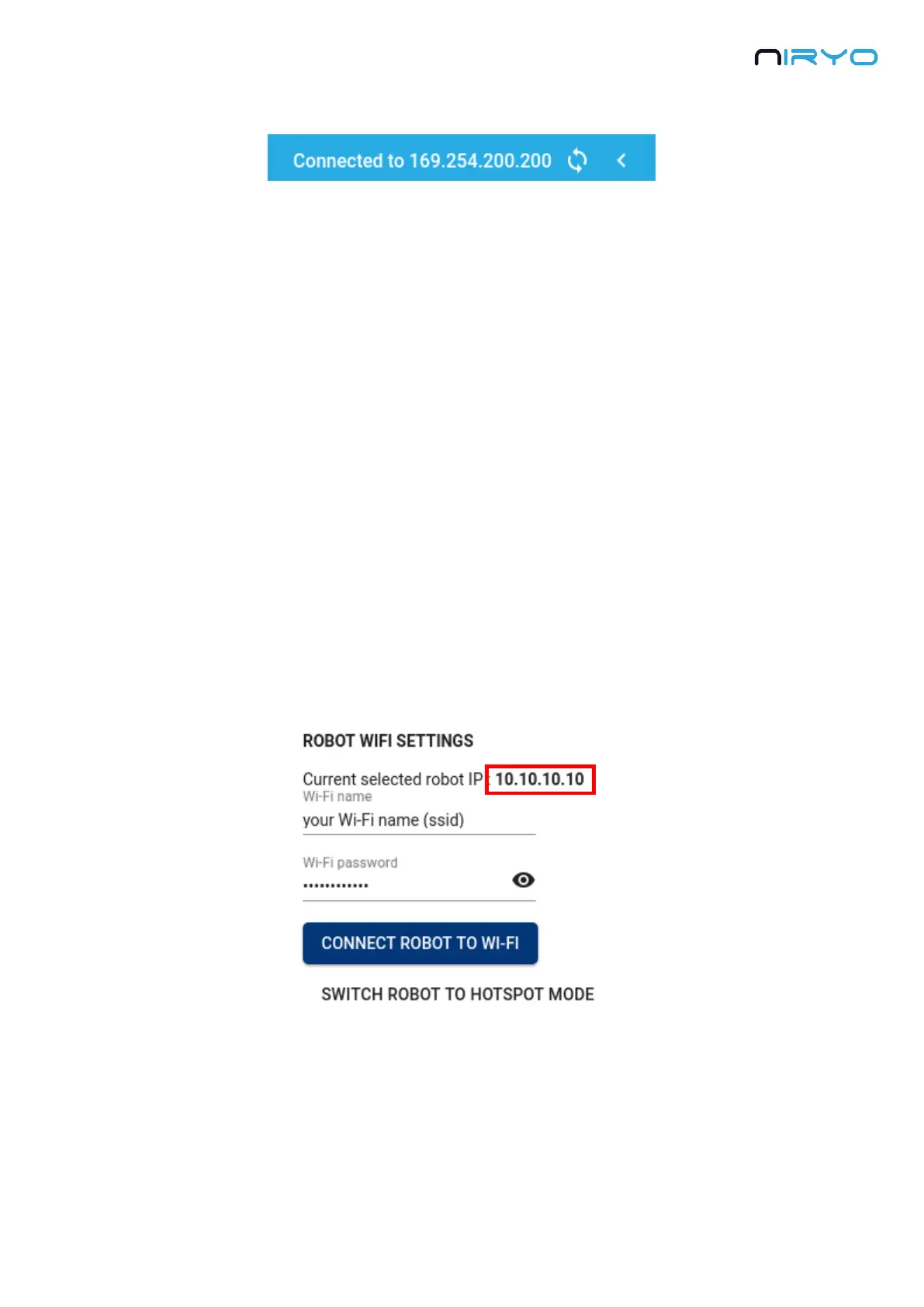 Fi settings” block, make sure that the displayed IP address is the IP address of the robot you