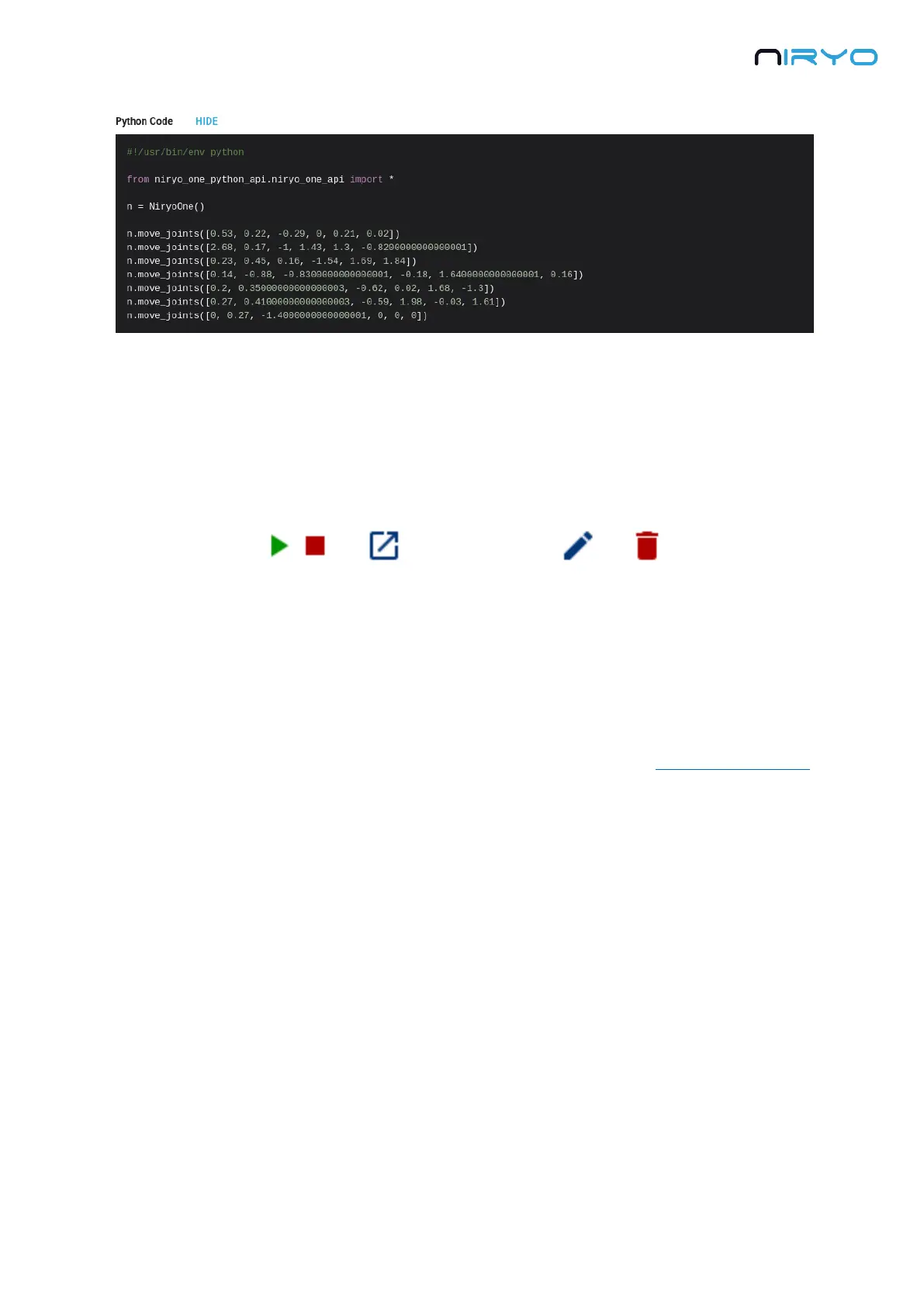 1. Play the selected sequence (same as the “play” button on Niryo Blocks)