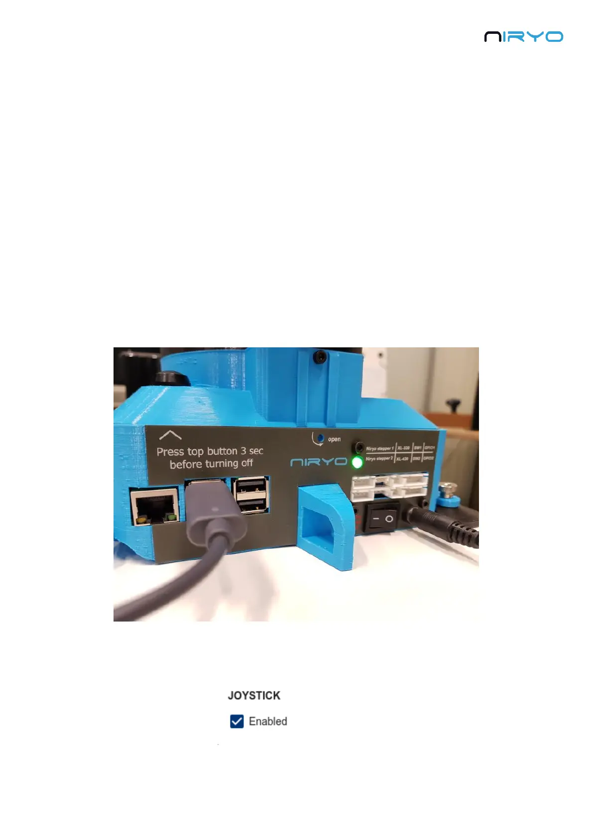 In Niryo One Studio, go in the “Settings” panel >“Joystick” section. Check the “Enabled”