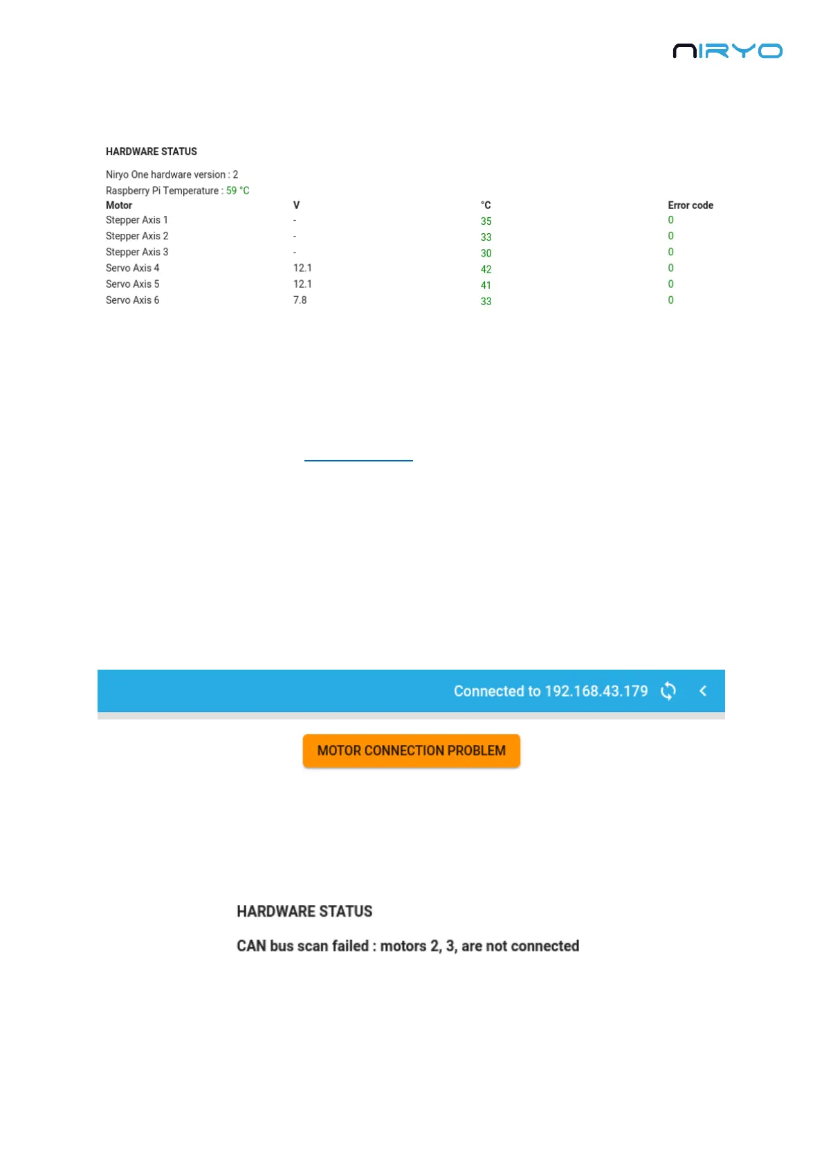 If you see a blinking alert saying “Motor connection problem” on the top right of Niryo One
