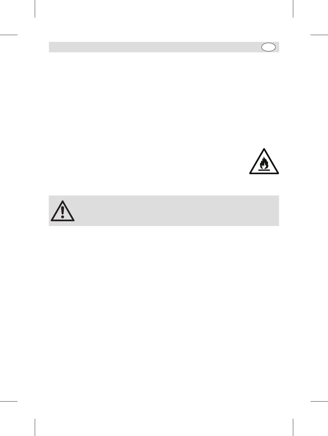 Warning: Risk of fire / flammable materials