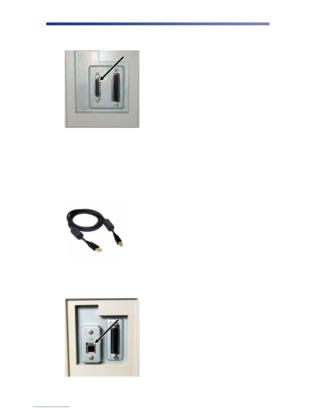 2. Connect the micro centronics connector to the printer’s parallel port, and snap the