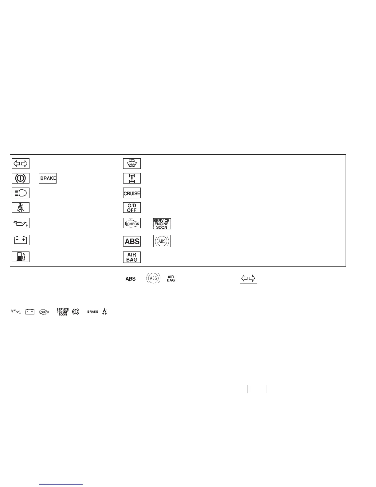 Turn signal/hazard indicator lights Low washer fluid warning light