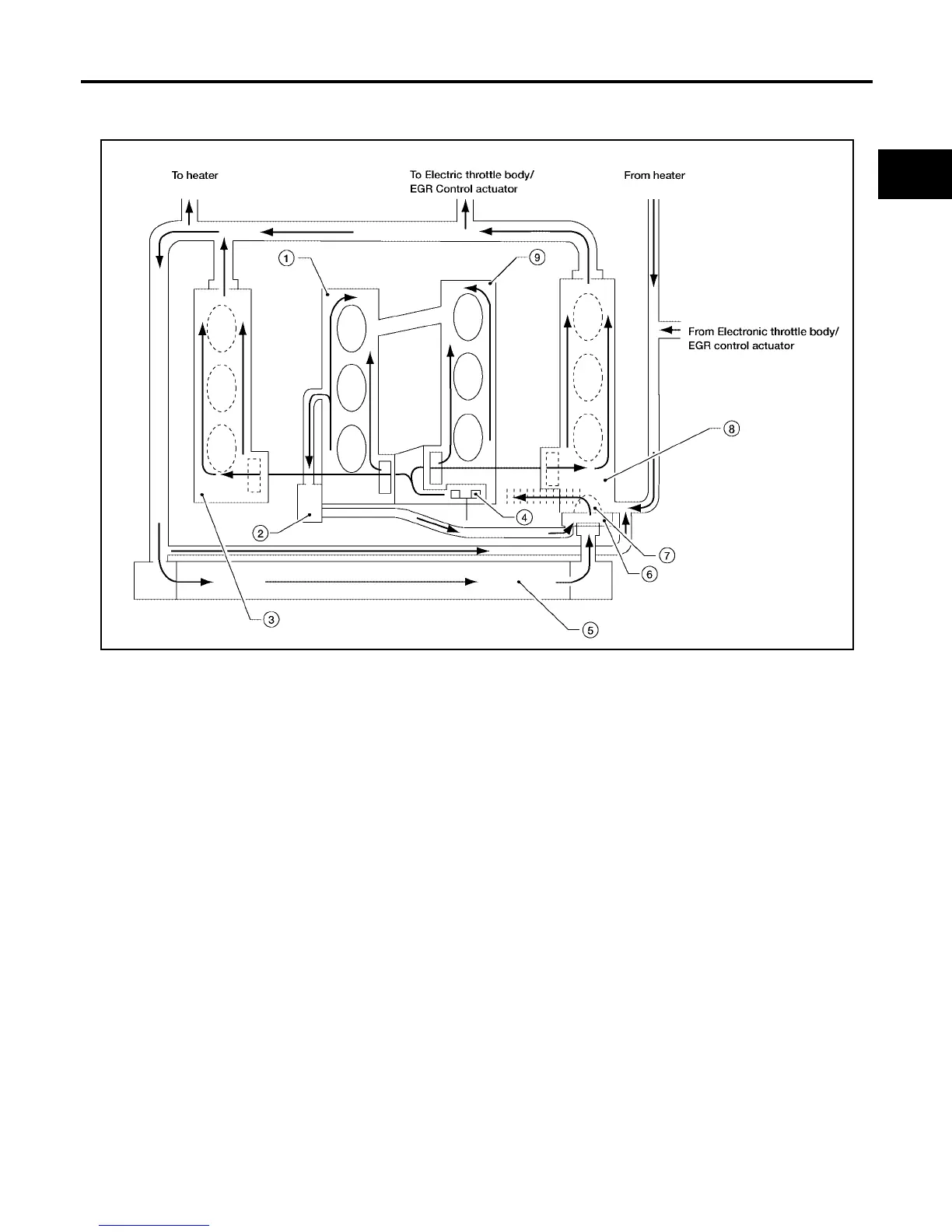 7. Thermostat 8. Cylinder head (LH) 9. Cylinder block (LH)