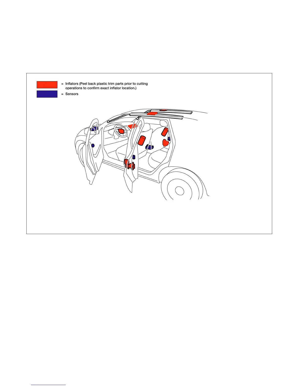 Avoid cutting air bag system parts. However, the vehicle can be cut (except inflators) under the following