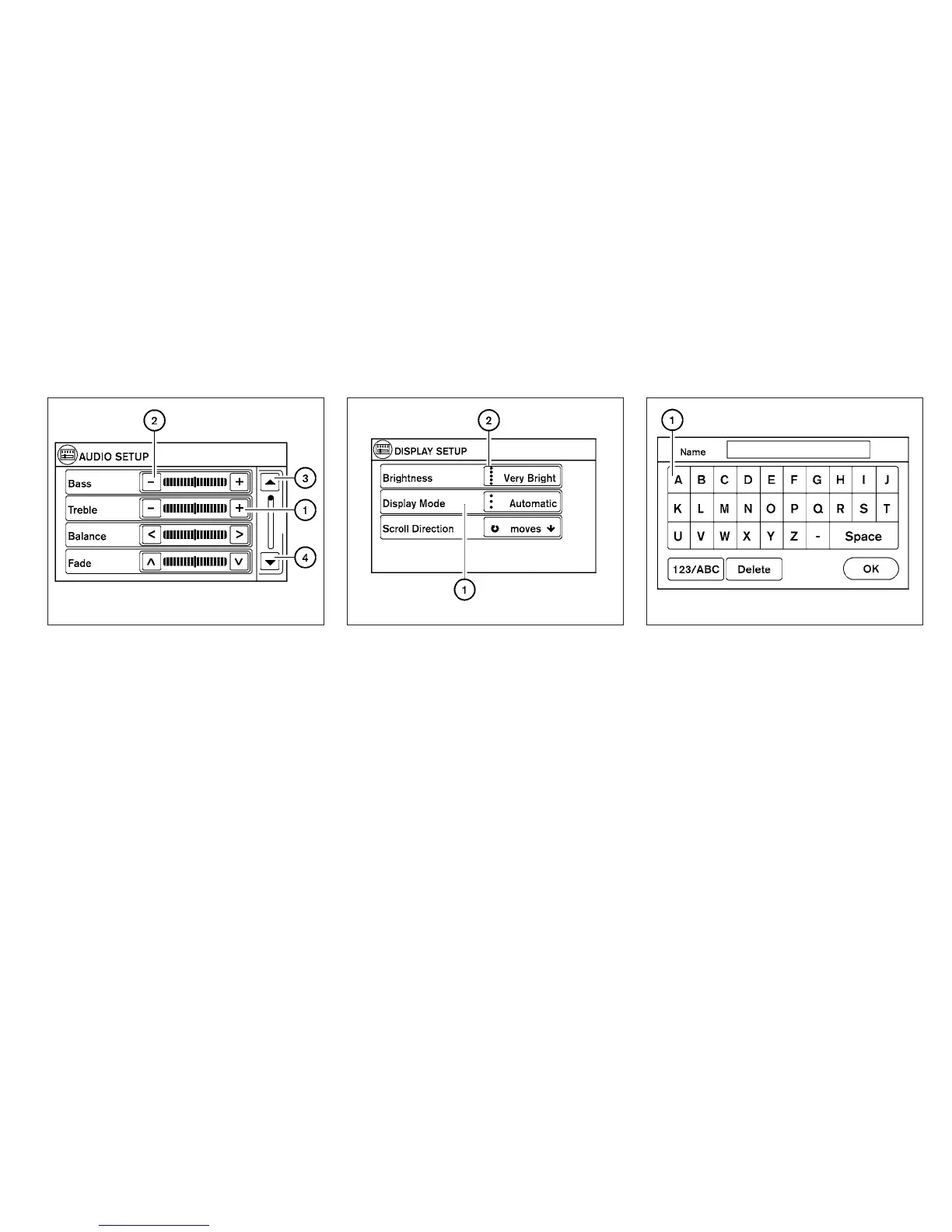treble for the audio system, touch the “+” key