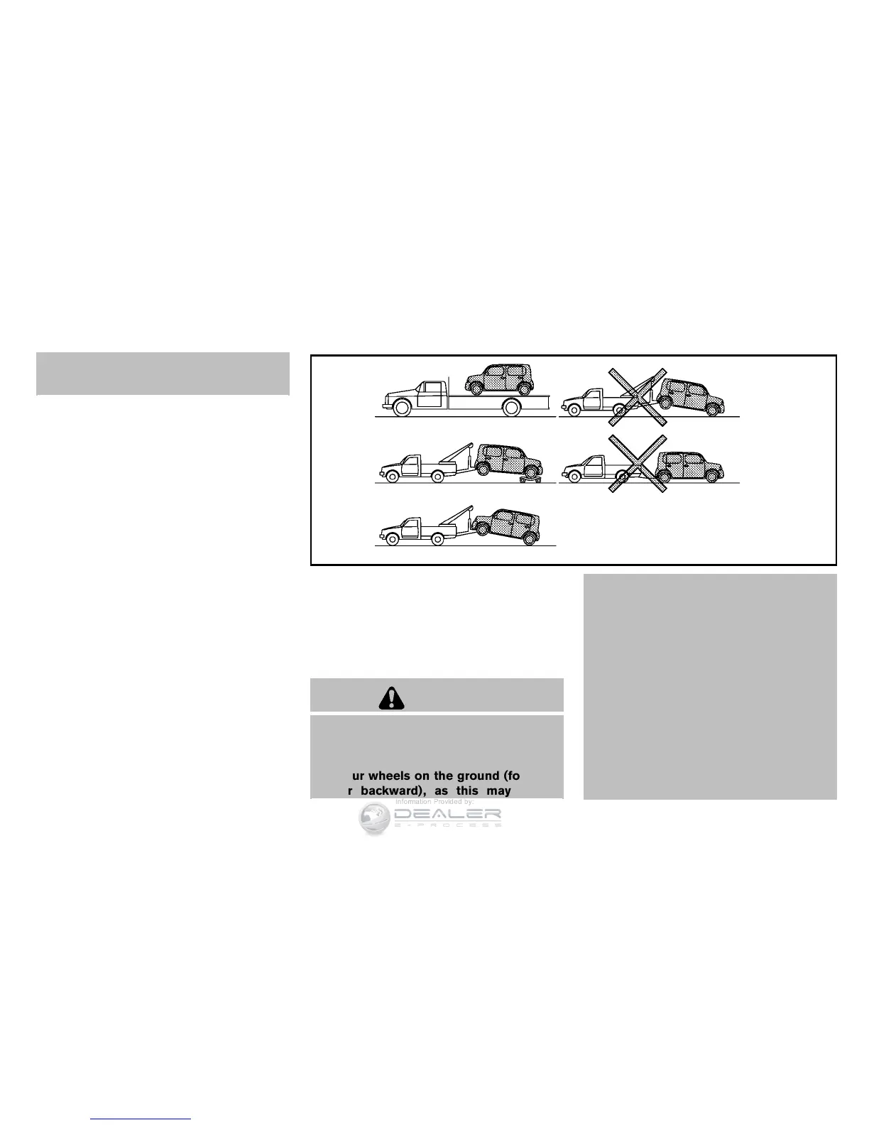 towed with the driving (front) wheels off the