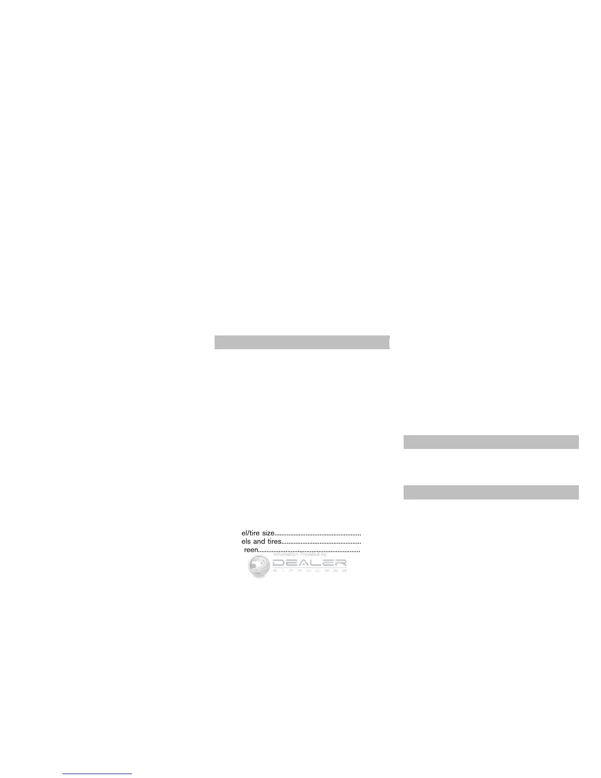Tire pressure, Low tire pressure warning light.... 2-14