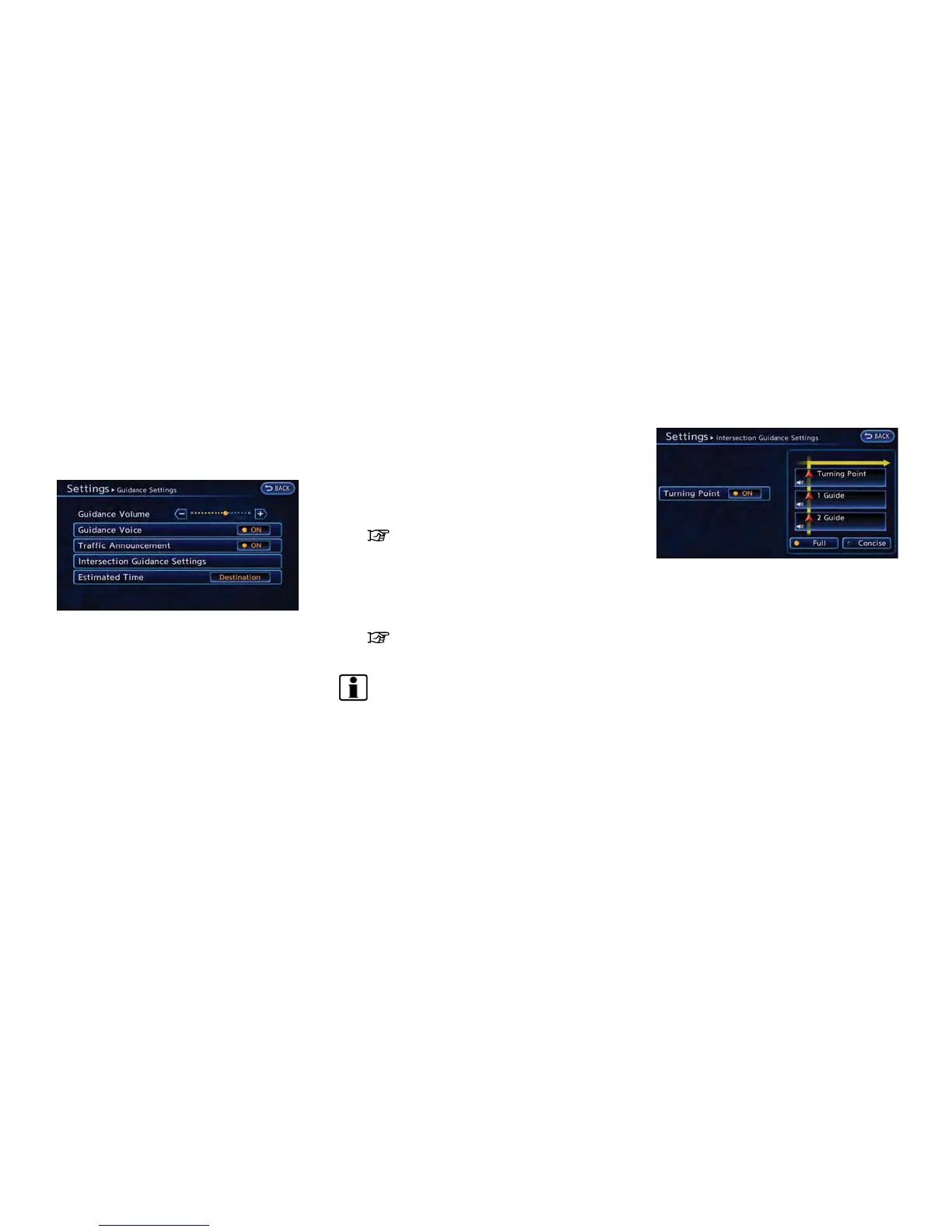 ROUTE GUIDANCE SETTINGS
