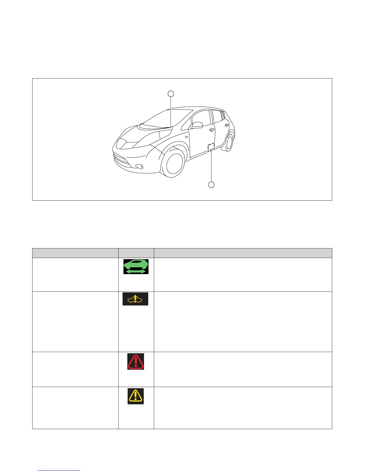 1. VIN plate (visible through windshield) 2. Vehicle certification plate (lower center pillar)