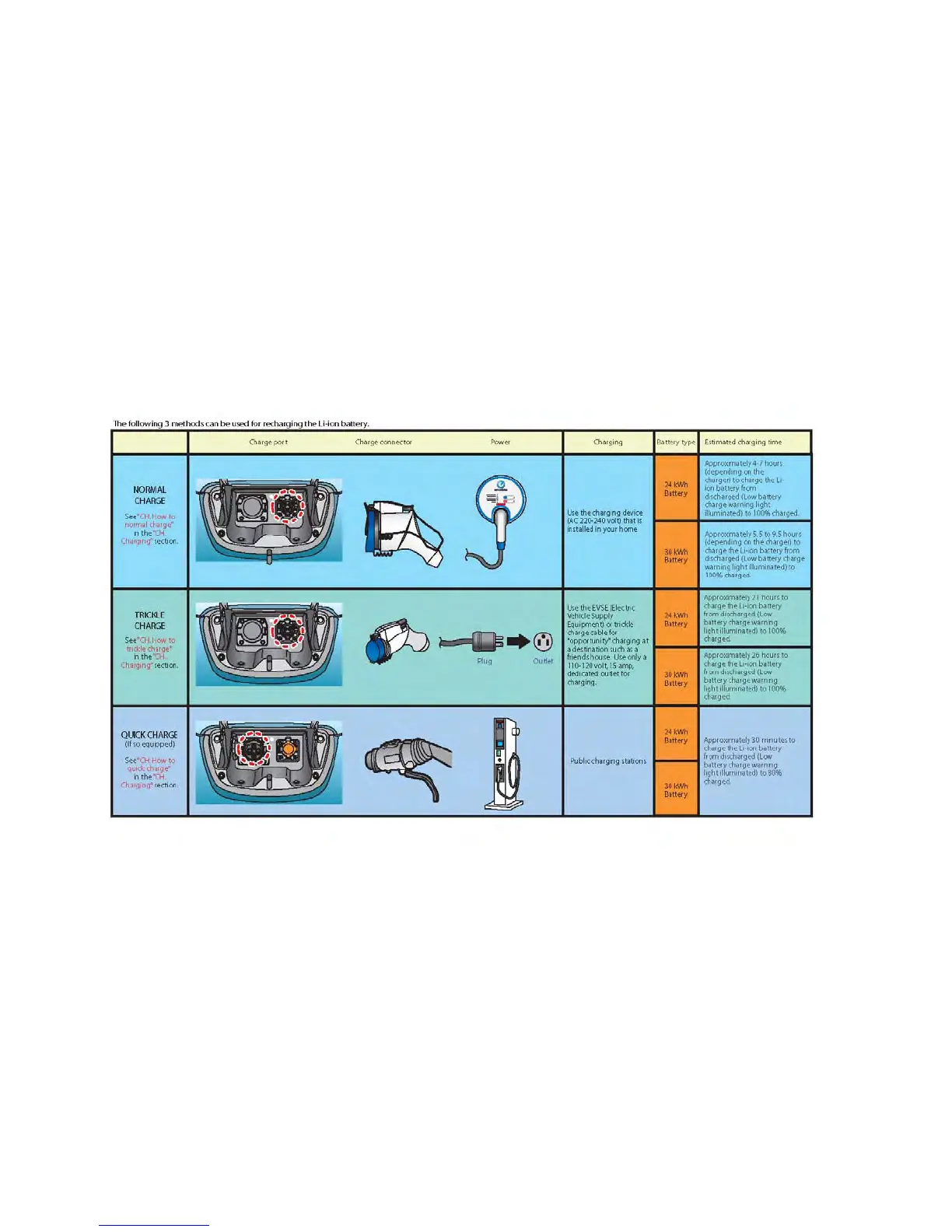 Nissan 2016 Leaf - CHARGING INFORMATION; CHARGING INFORMATION Table