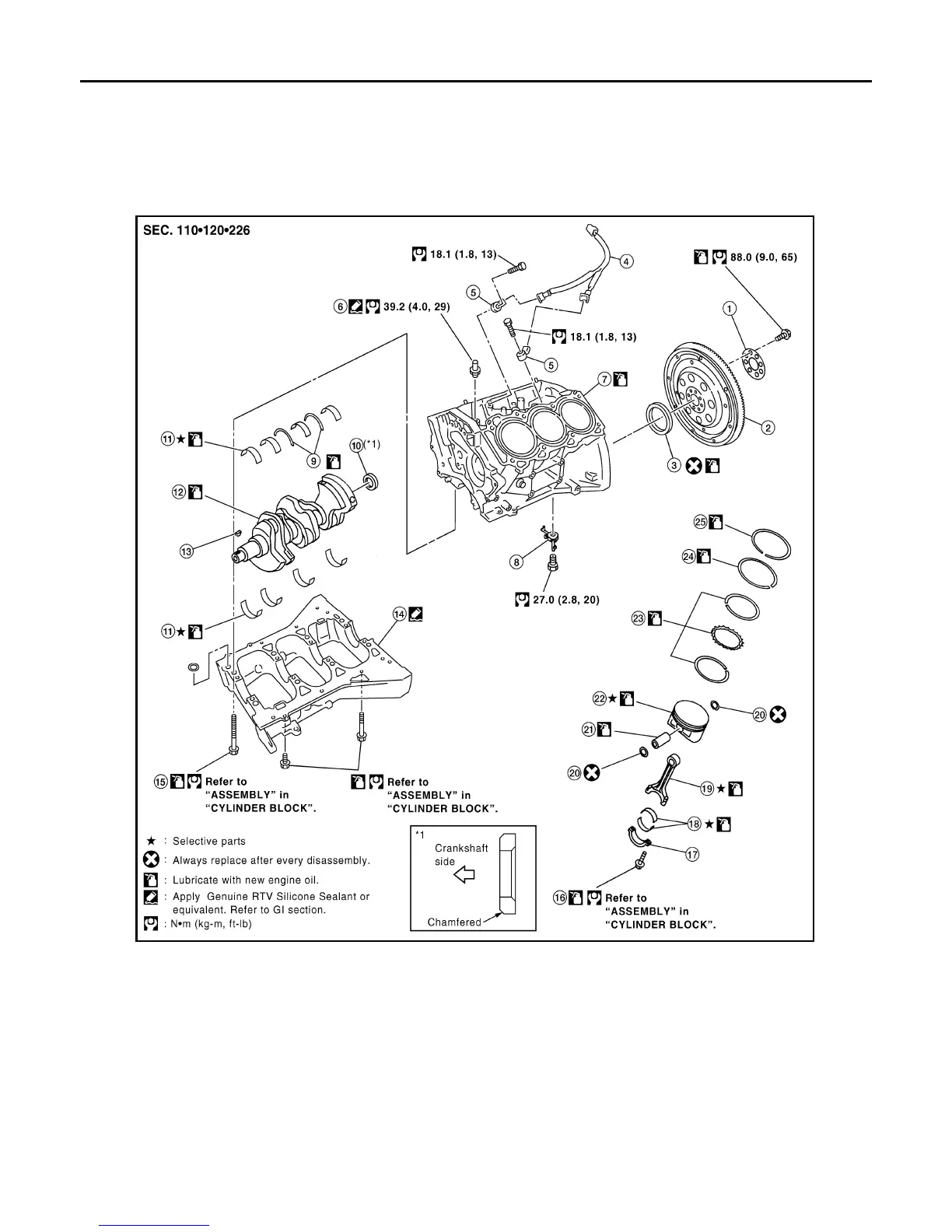 10. Pilot converter (A/T models) 11. Main bearing 12. Crankshaft