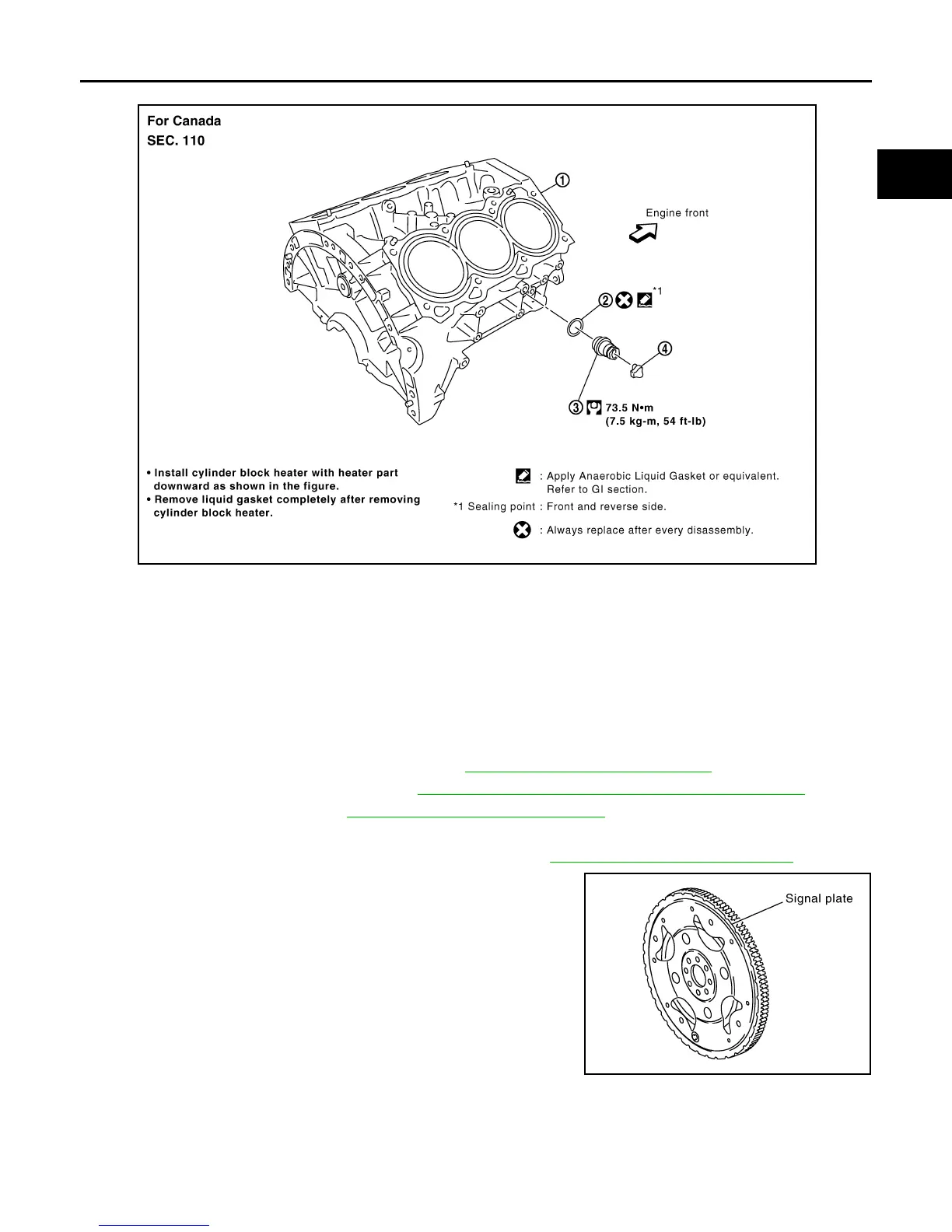 1. Cylinder block 2. Gasket 3. Cylinder block heater