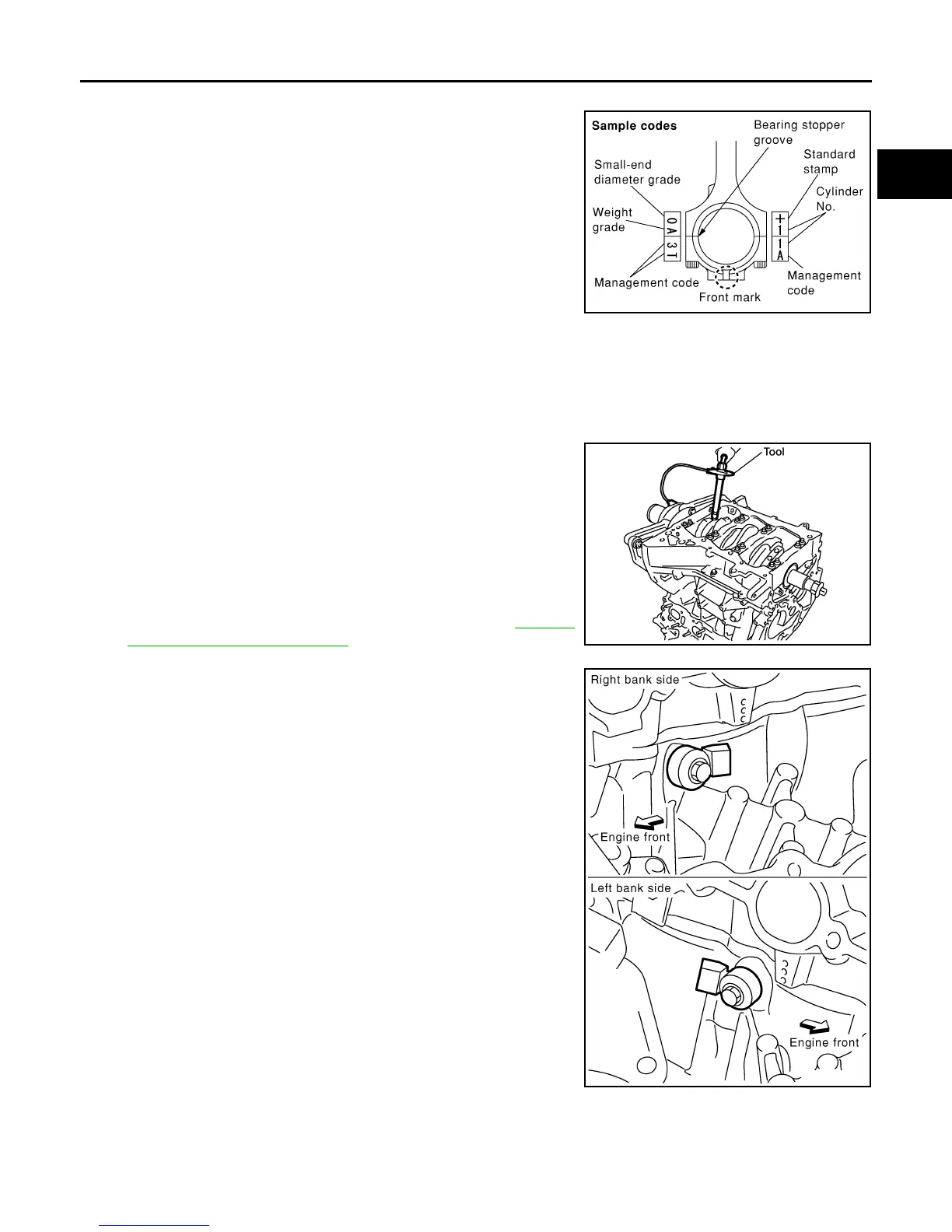 • Be sure that front mark on connecting rod bearing cap is fac-