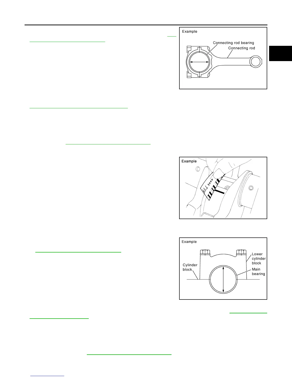 • Install connecting rod bearings to connecting rod and cap, and tighten connecting rod bolts to the specified