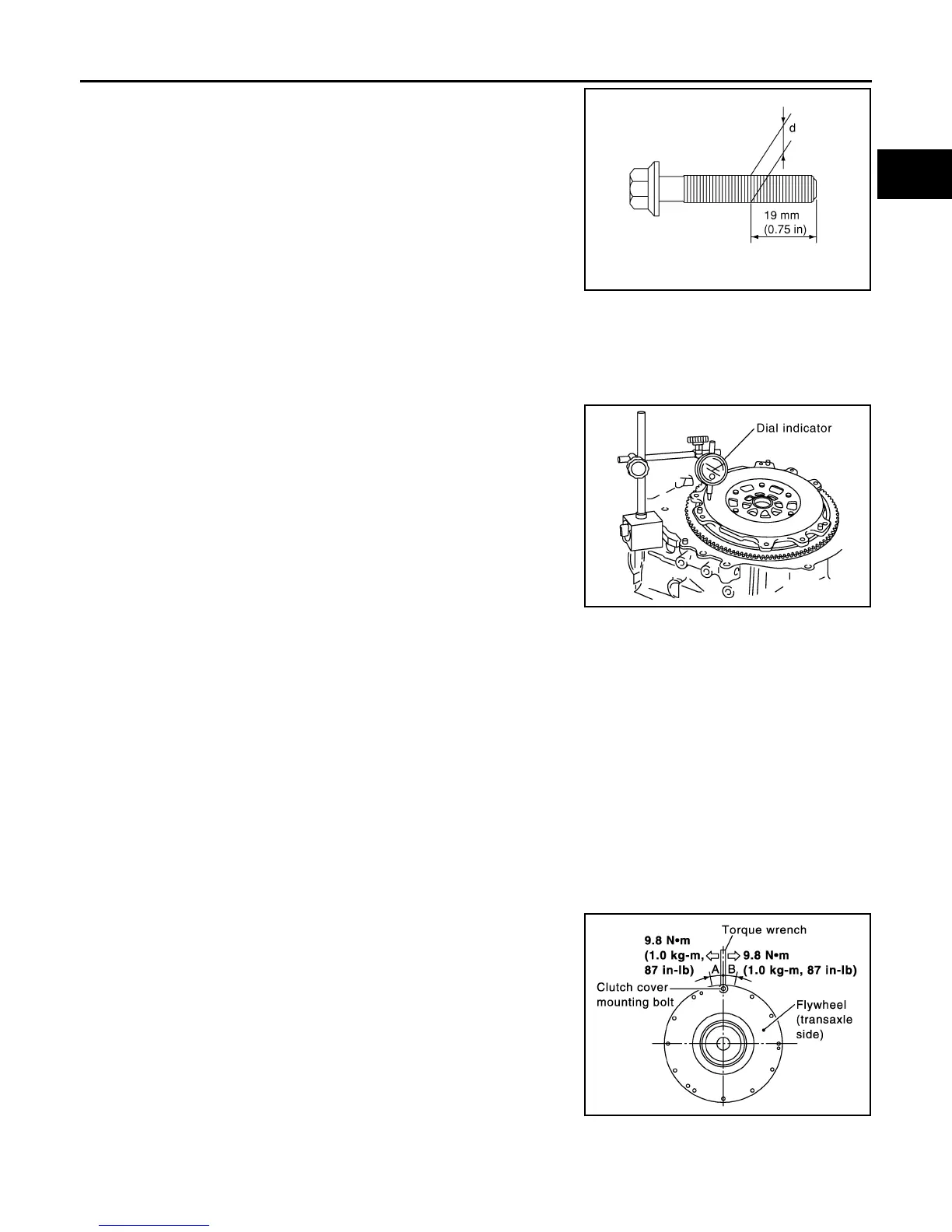 1. Install a bolt to clutch cover mounting hole, and place a torque wrench on the extended line of the flywheel