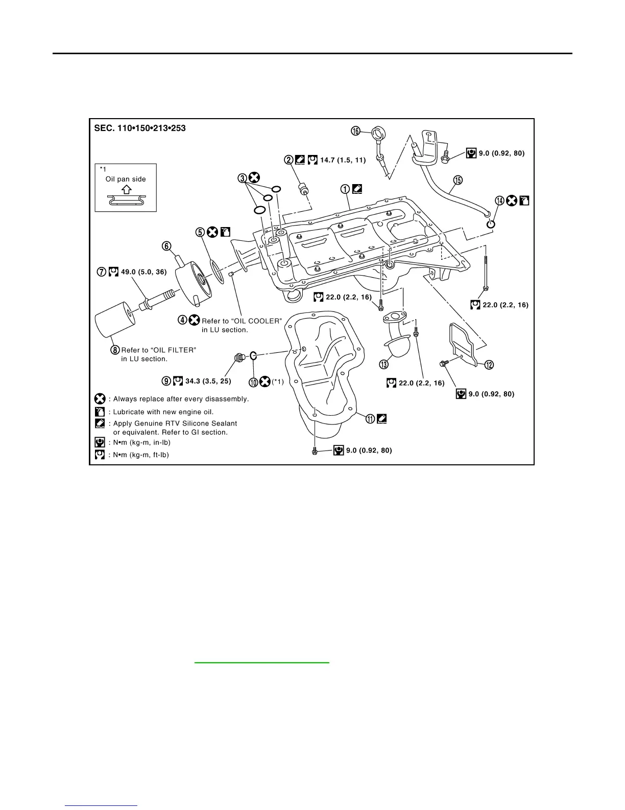 13. Oil strainer 14 O-ring 15. Oil level gauge guide