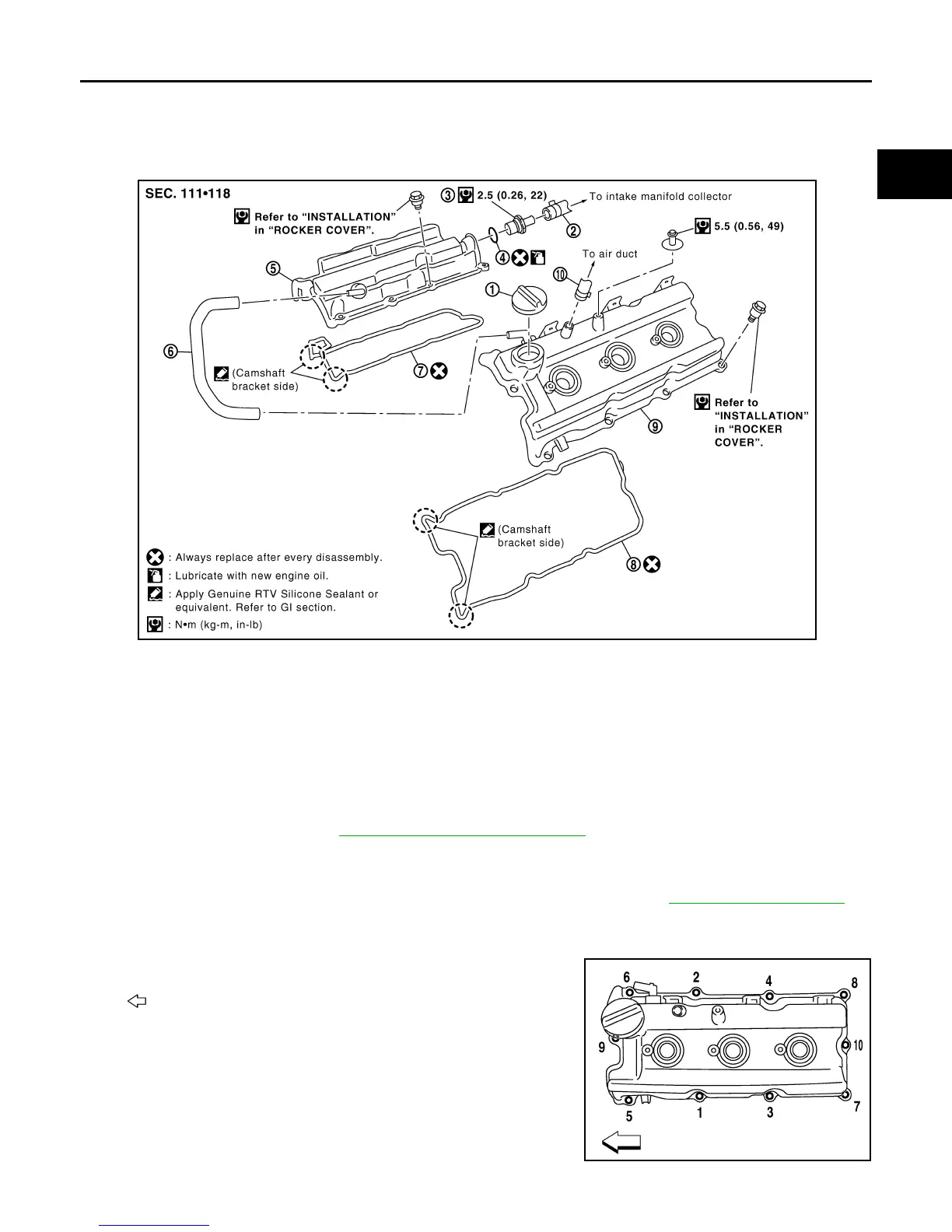 7. Rocker cover gasket (RH) 8. Rocker cover gasket (LH) 9. Rocker cover (LH)