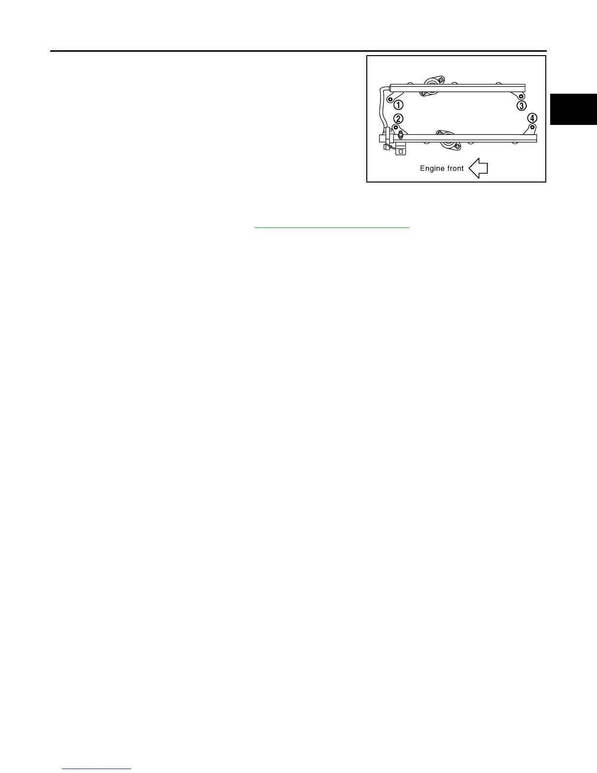 8. Install intake manifold collector. Refer to EM-25, "Removal and Installation"
