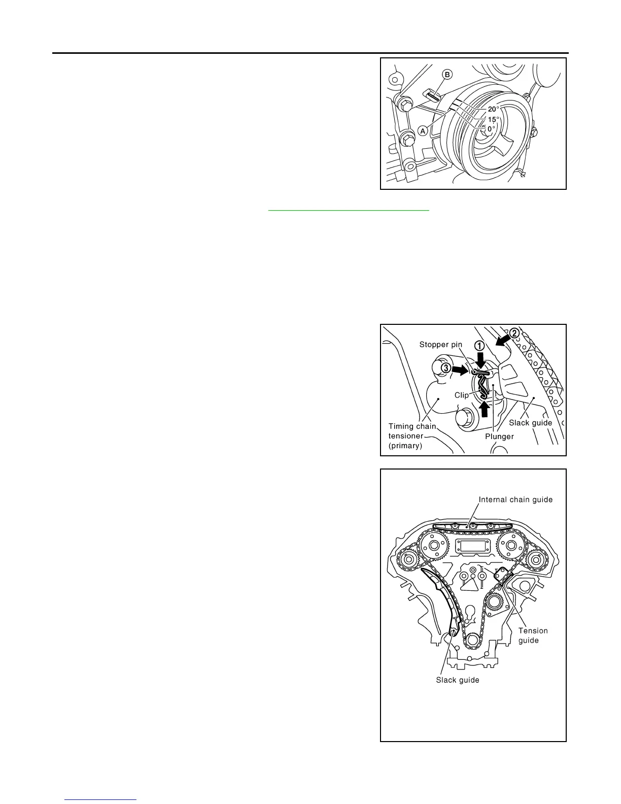 2. Remove front timing chain case. Refer to EM-51, "Removal and Installation"