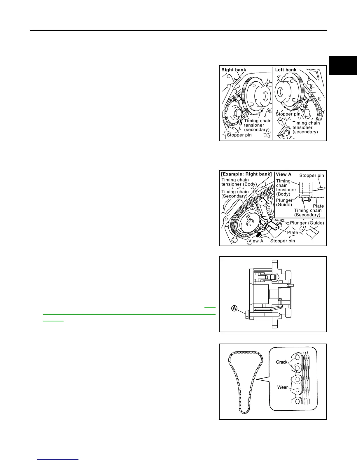 9. Remove timing chain (secondary) and camshaft sprockets as follows: