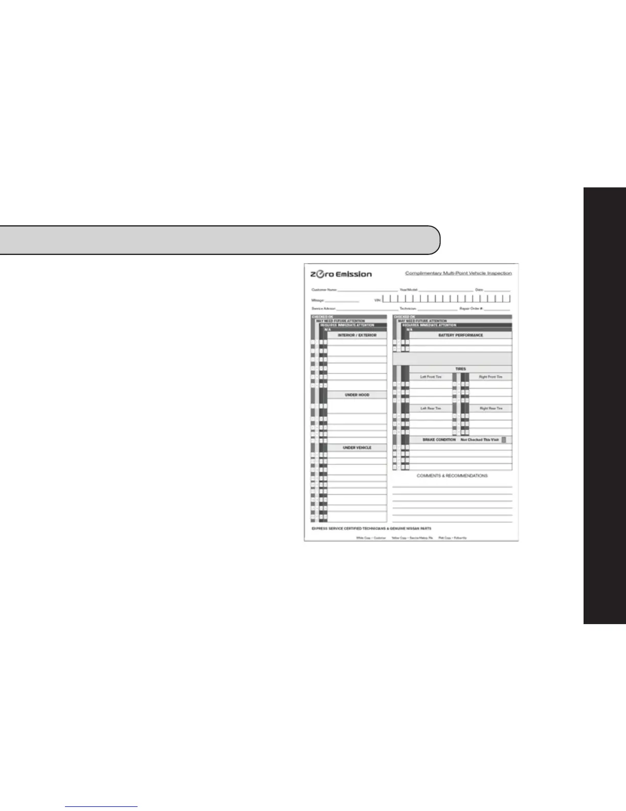 NOTE: Multi-Point Vehicle Inspection form shown is an