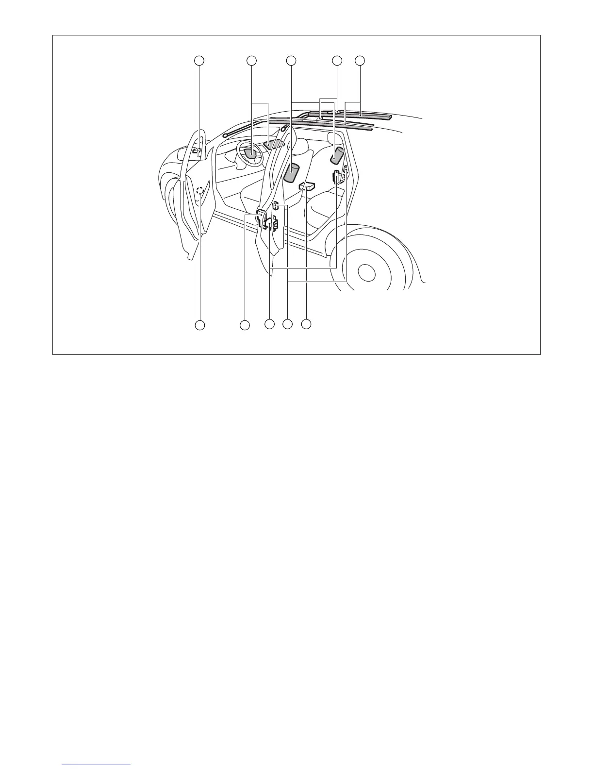 8. Seat belt with pretensioner 9. Rear satellite sensors (located