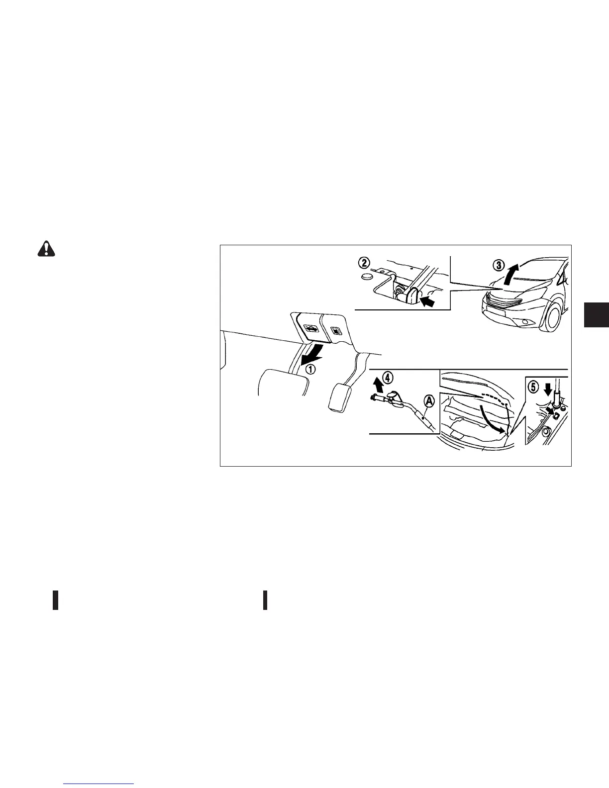 1. Pull the bonnet lock release handle j1 located