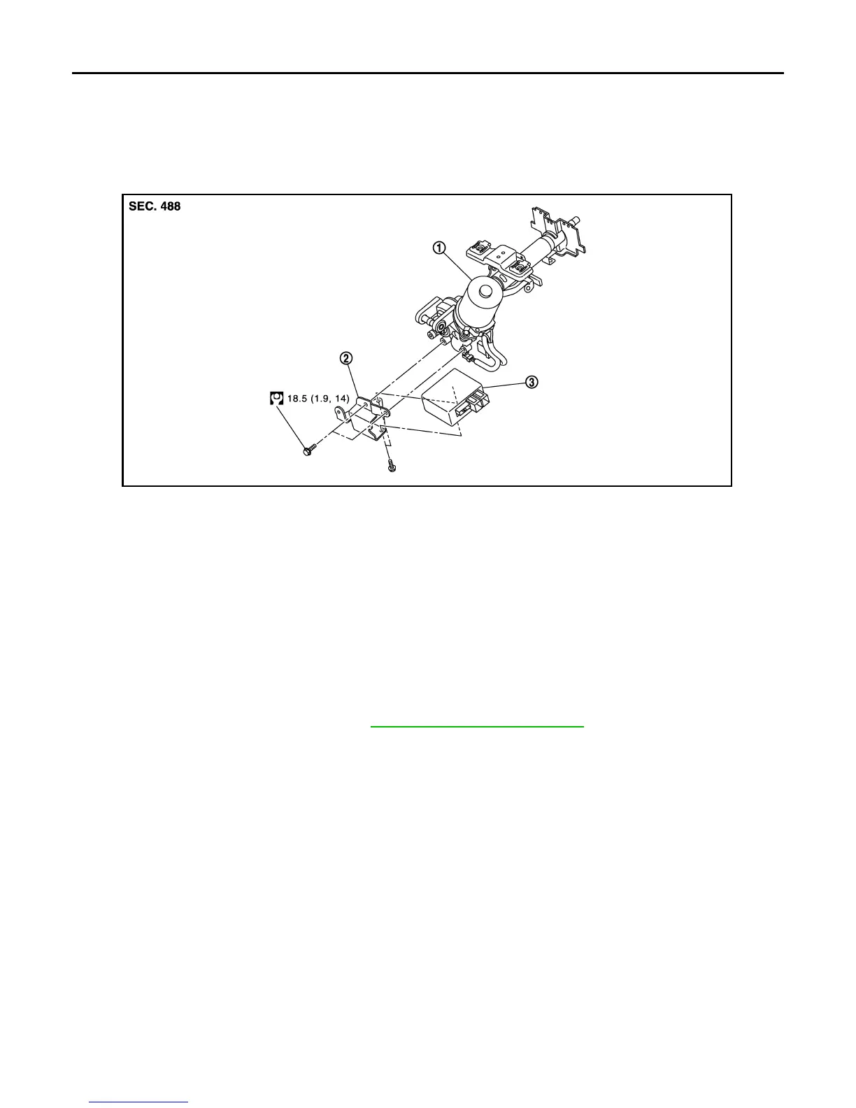 1. Steering column assembly 2. Bracket 3. EPS control unit