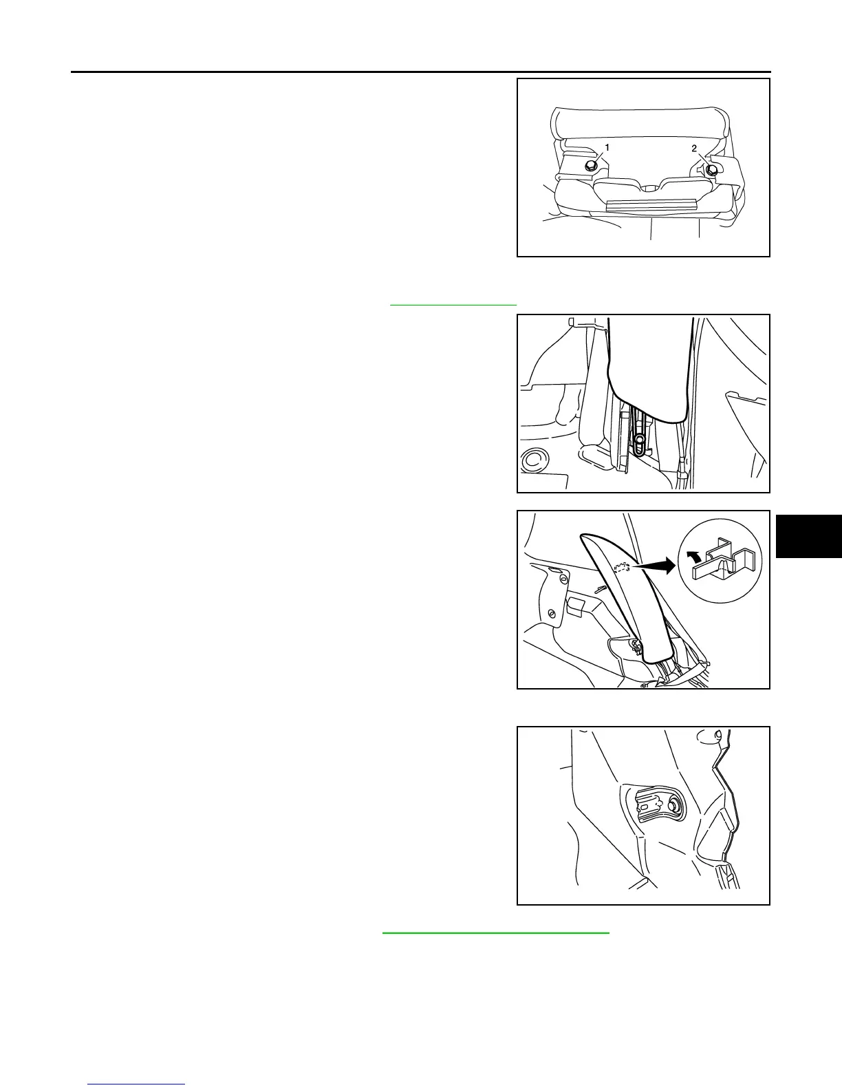 8. Remove the kicking plate rear inner. Refer to EI-35, "