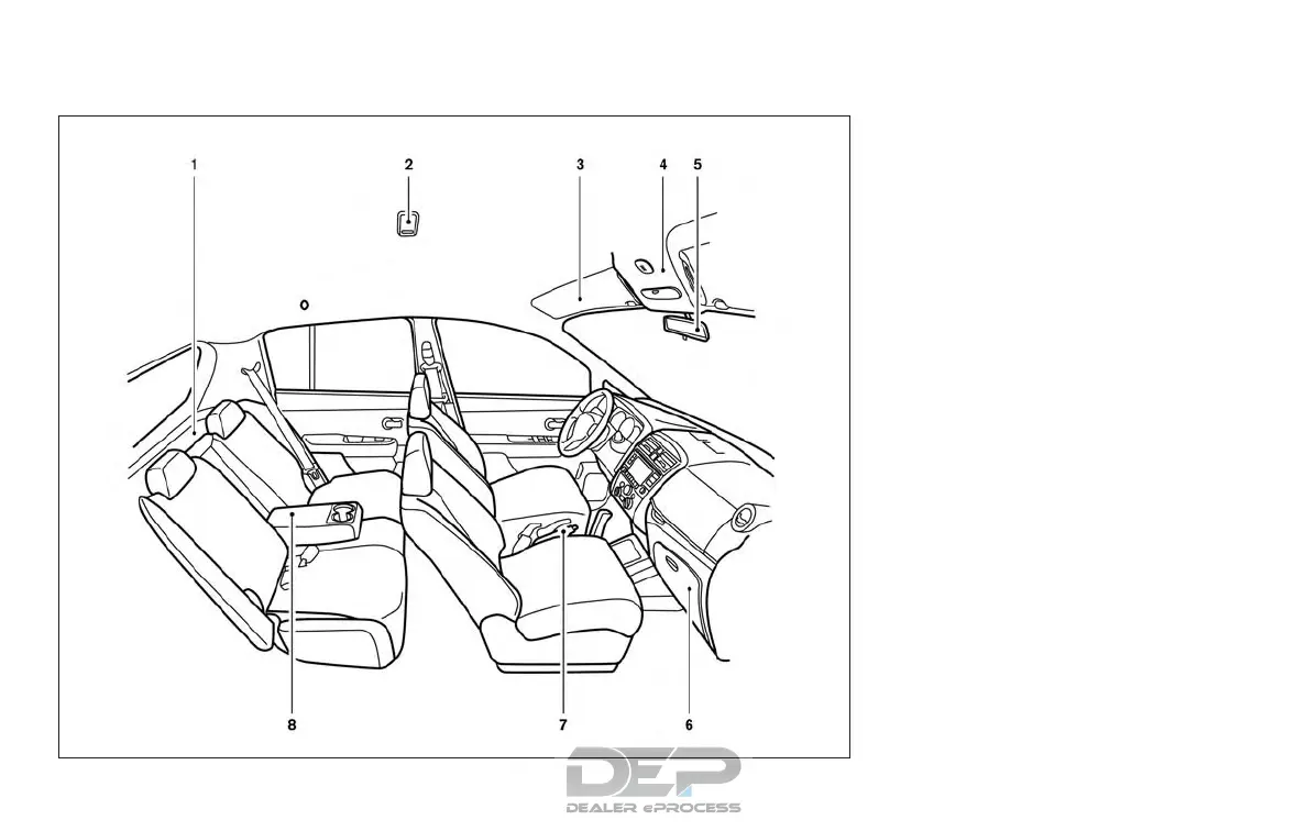 8. Rear armrest (if so equipped) (P. 1-2)
