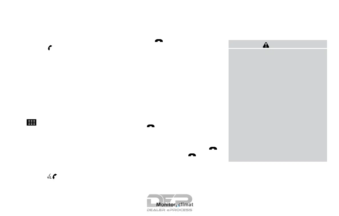 The “Phone” screen will appear on the dis-