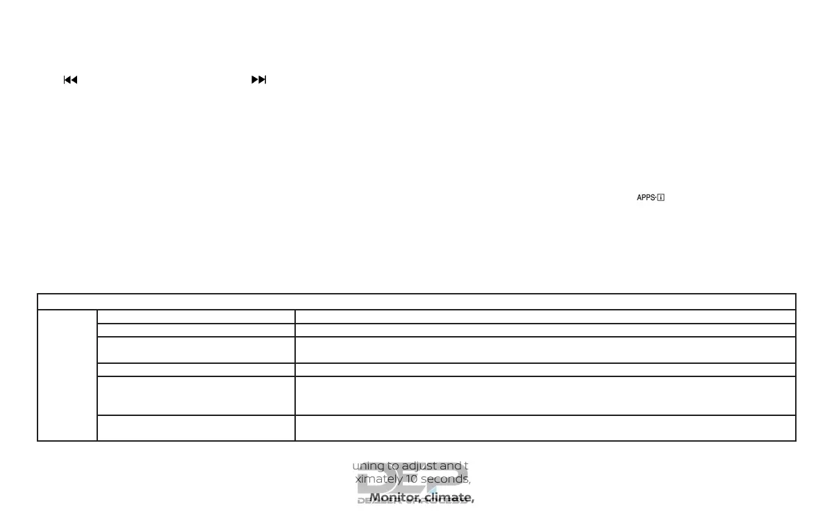main audio screen. If the button is not pressed for approximately 10 seconds, the radio or CD display will automatically reappear.