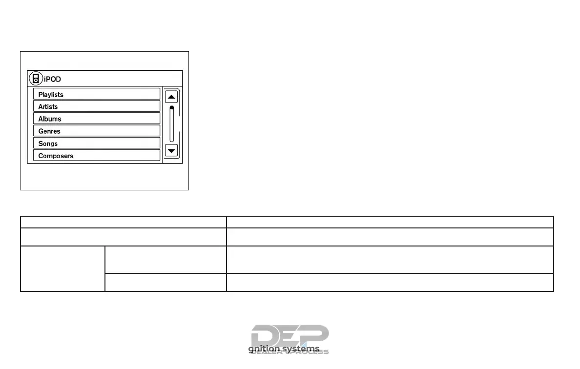 When the iPod® is playing, touch the “Menu”