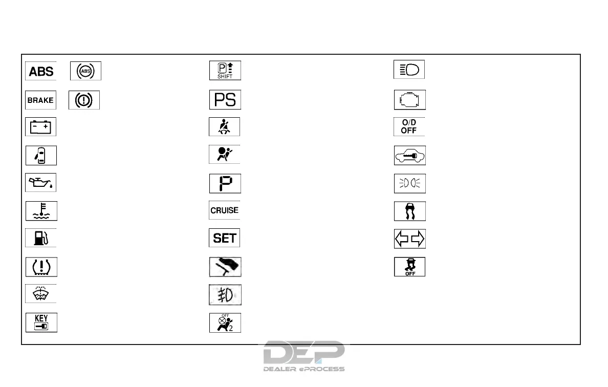 Charge warning light Seat belt warning light and chime Overdrive OFF indicator light (if so