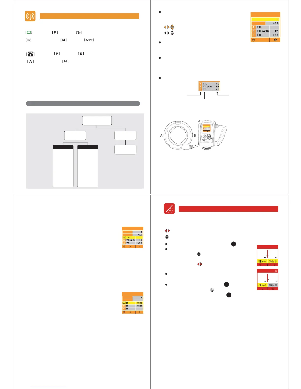 The Ring flash placed on the camera is called “Master”- Group A and B.