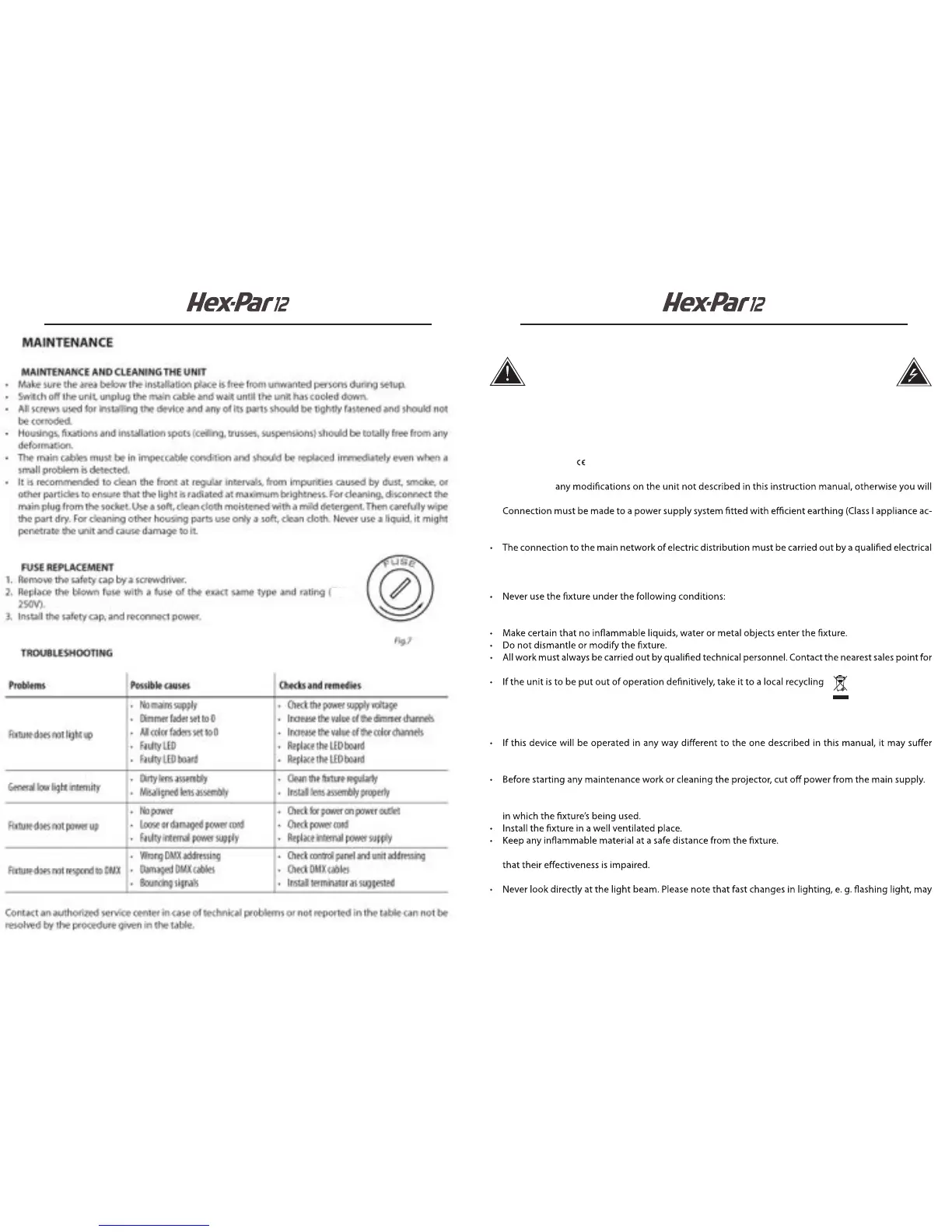 damage and the guarantee becomes void. Furthermore, any other operation may lead to dangers like