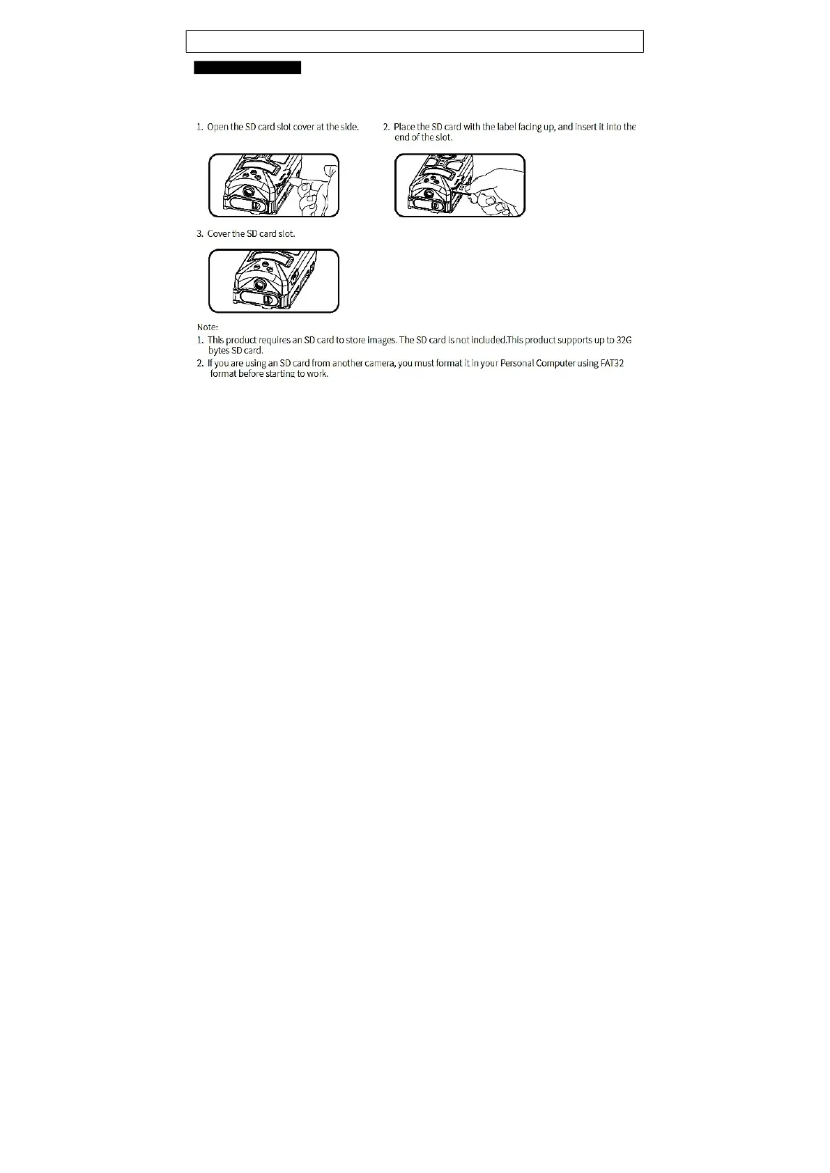 Note! Make sure camera is OFF when adding or removing SD memory card.