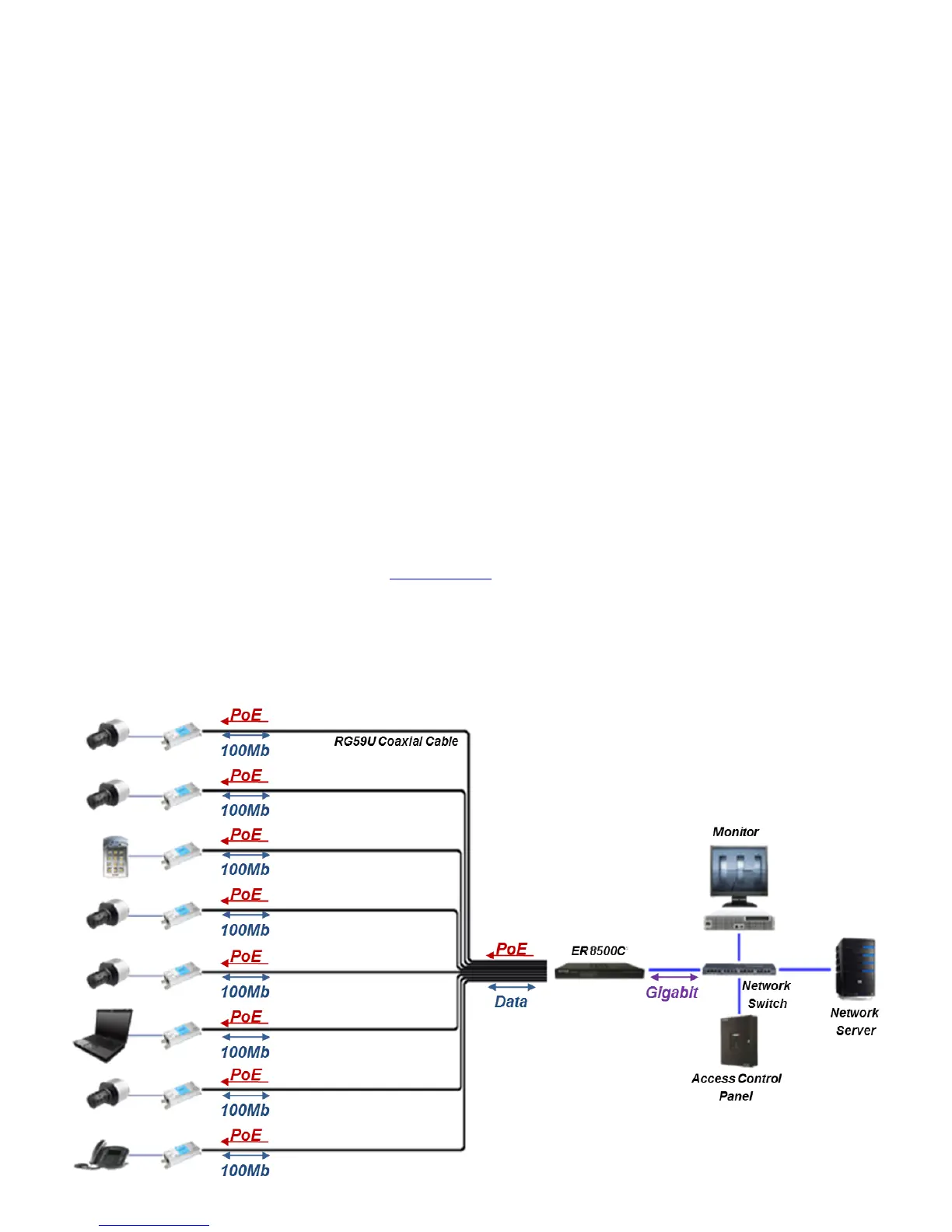 The ER8500C powers itself and all attached devices within in this network/system. The IP data from