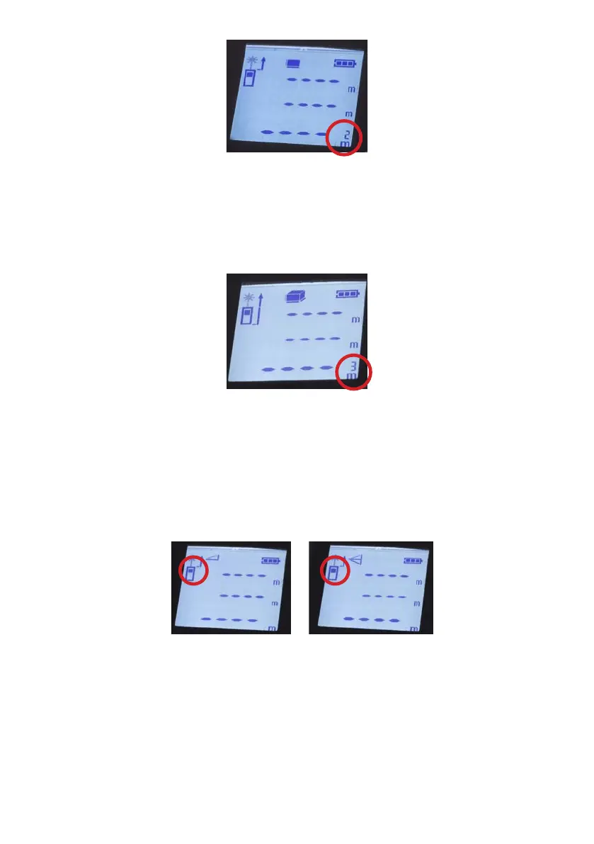 b) Press the measurement mode selection button (2) ve times, for the Pythagoras function for one triangle