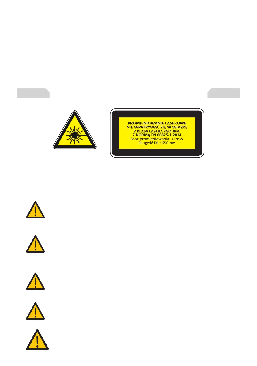 • Należyunikaćwłączaniawskaźnikalaserowegowprzypadku,gdypromieńlaseraoświetli