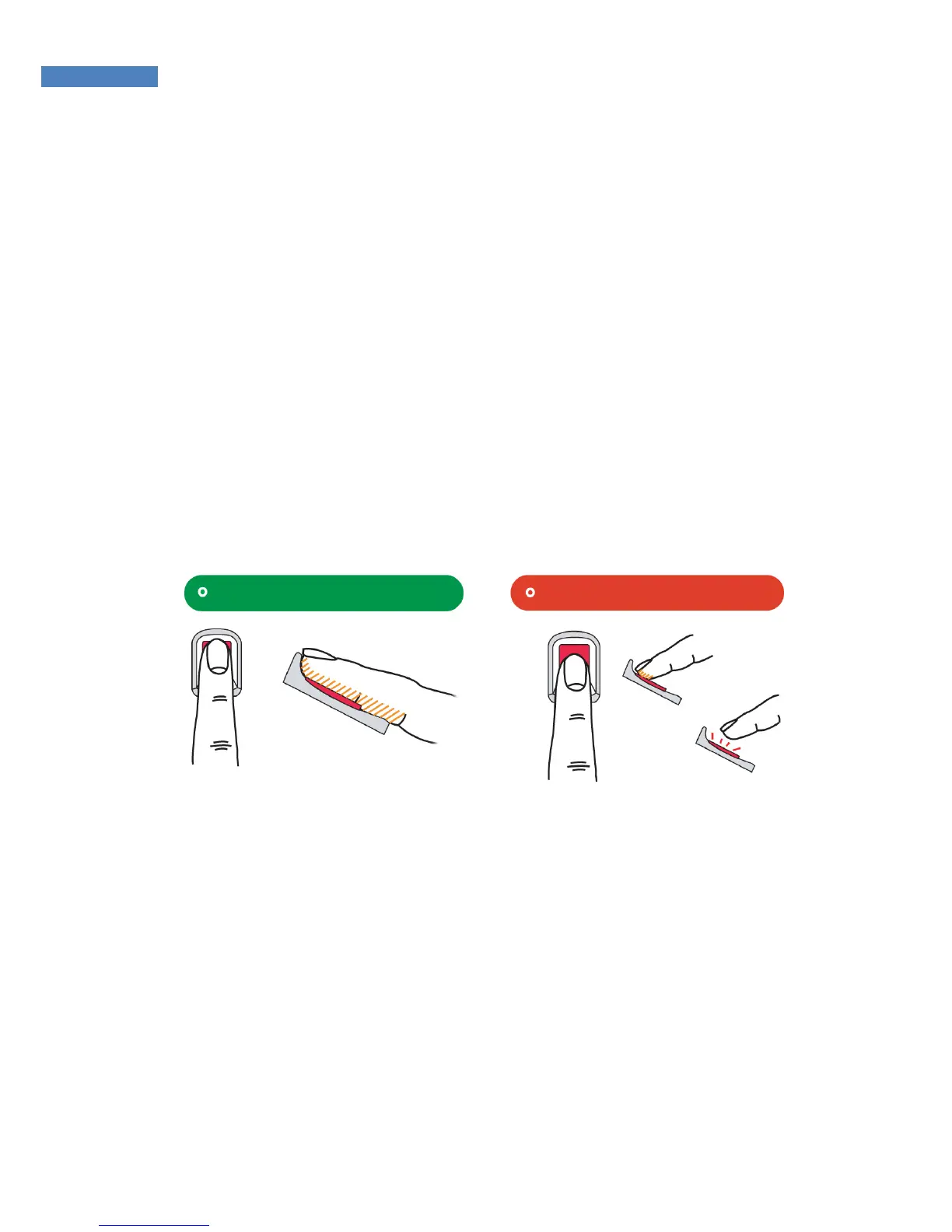 ① Maximize the finger area scanned and press evenly (70 ~ 80%