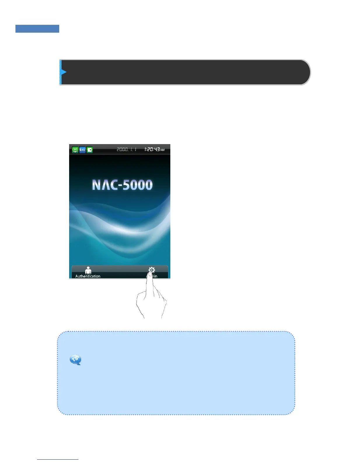 menu, touch the “Admin”