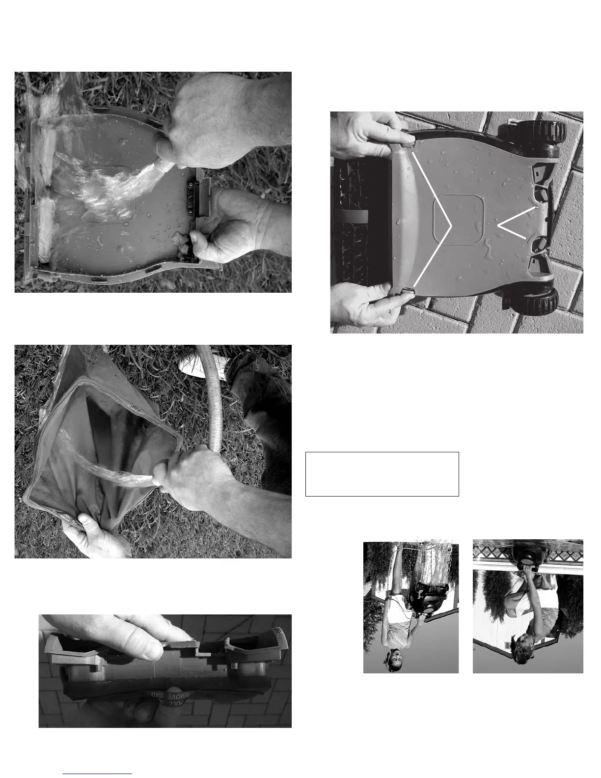 • Retournez le sac à filtre et nettoyez les débris à l'aide d'un jet d'eau tel qu'indiqué à l'image 5.
