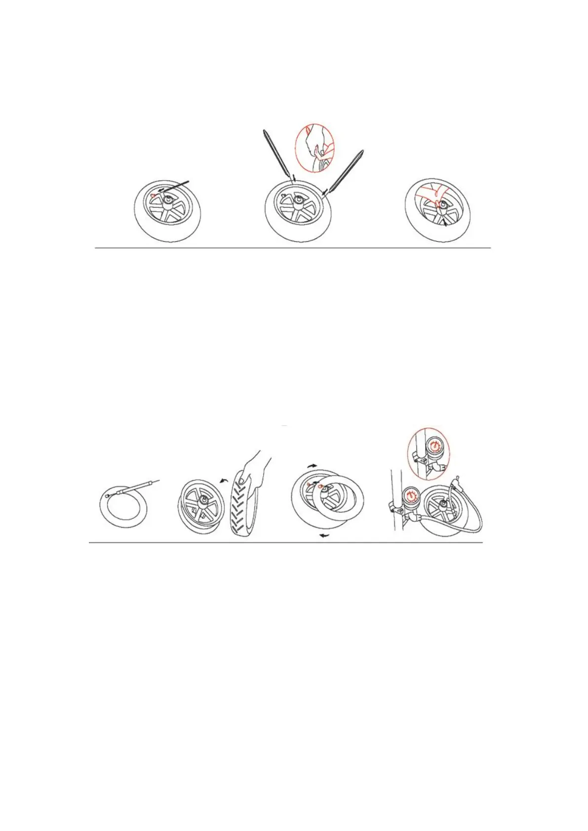1. Fill a small amount of air into the deflated inner tire until the inner tire is just bulged to appear round.