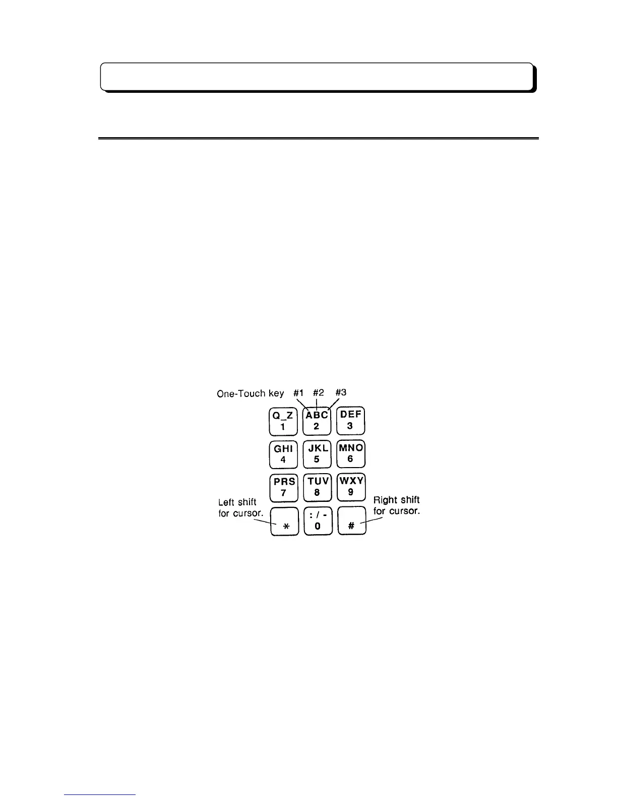 - One-touch key (1-3) with Dial key (0-9): Letters and symbols