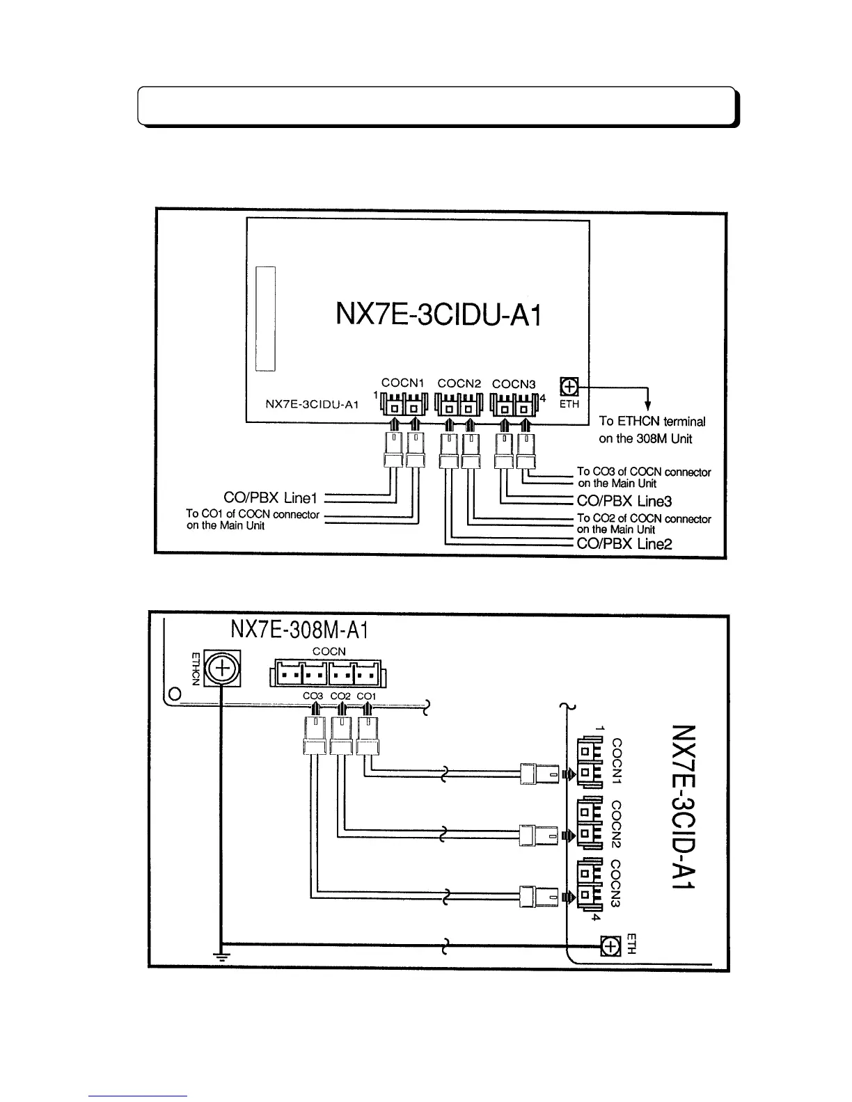 illustration. Make connection from PTT lines to one of the connector labeled COCN () on the