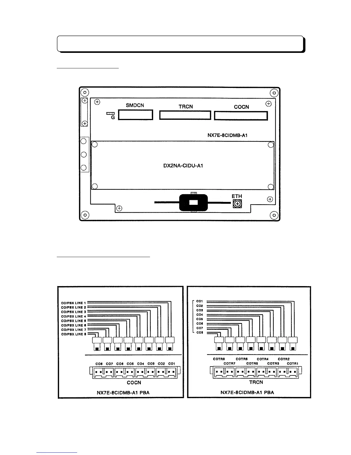 connection from PTT lines to one of the connector (labeled COCN) on 8CIDMB-A1 unit in the